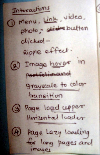 I thought about interactions – I thought about animations and feedbacks that need to be shown when menu, links, buttons, images or videos are clicked. I used ripple animations as seen in Google's material design.